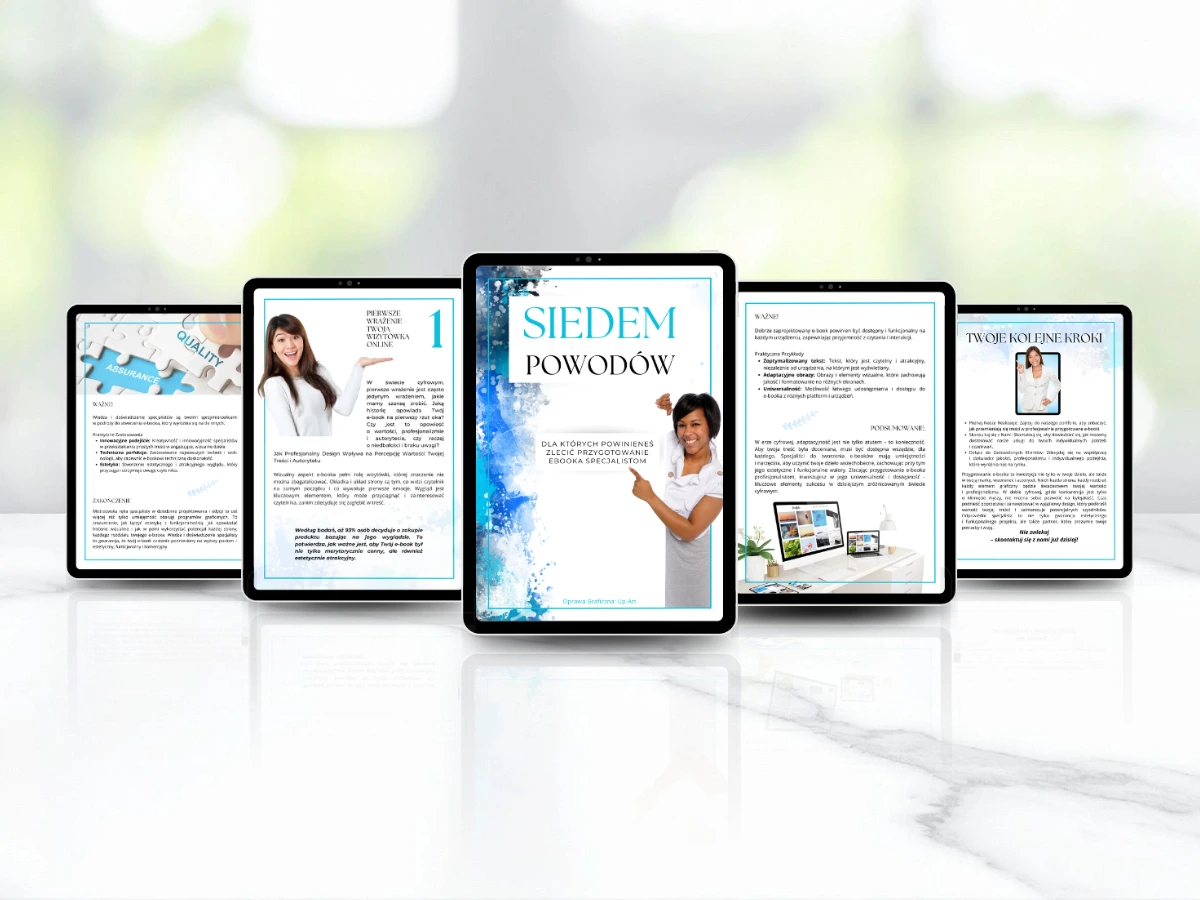 Cześć, tu Katarzyna! Jeśli Twój e-book wygląda obecnie jak wymięty dres, czas wrzucić go w smoking. Choć moją największą miłością jest projektowanie graficzne opraw e-booków, z równą pasją szyję reklamy, grafiki do druku i „garnitury” na Twoje social media.